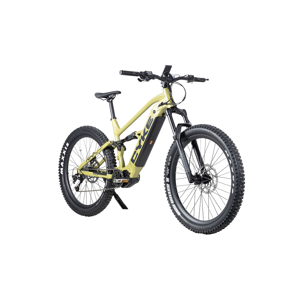 The Cyke Cross Series Falcon A Full Suspension Electric Bike is built for riders who demand precise control, smooth power delivery, and premium suspension performance across diverse terrain. Featuring a RockShox four-bar full suspension system with 150 mm front and rear travel, Falcon A delivers superior comfort, traction, and handling on technical trails, gravel paths, and rough backcountry routes.
