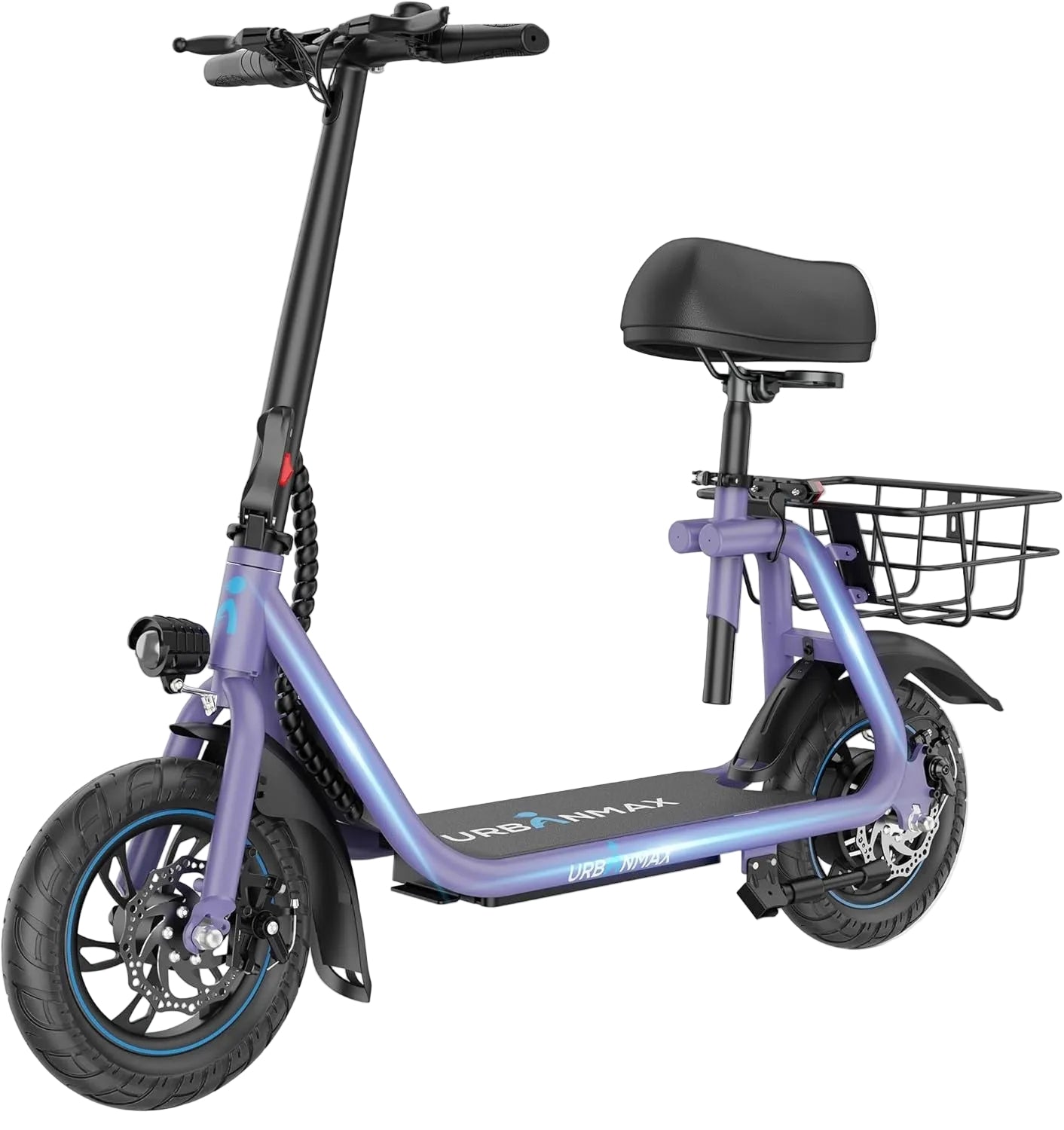 The Gyroor C1 Electric Scooter with Seat & Carry Basket is a practical and comfortable electric scooter designed for daily commuting and leisure rides. Powered by a 450W brushless hub motor and a 36V 7.5Ah lithium battery, it delivers smooth performance with a top speed of 15.5 mph and a range of up to 22 miles on a full charge. Its sturdy build, seated riding position, and carry basket make it ideal for city travel, errands, and relaxed cruising.